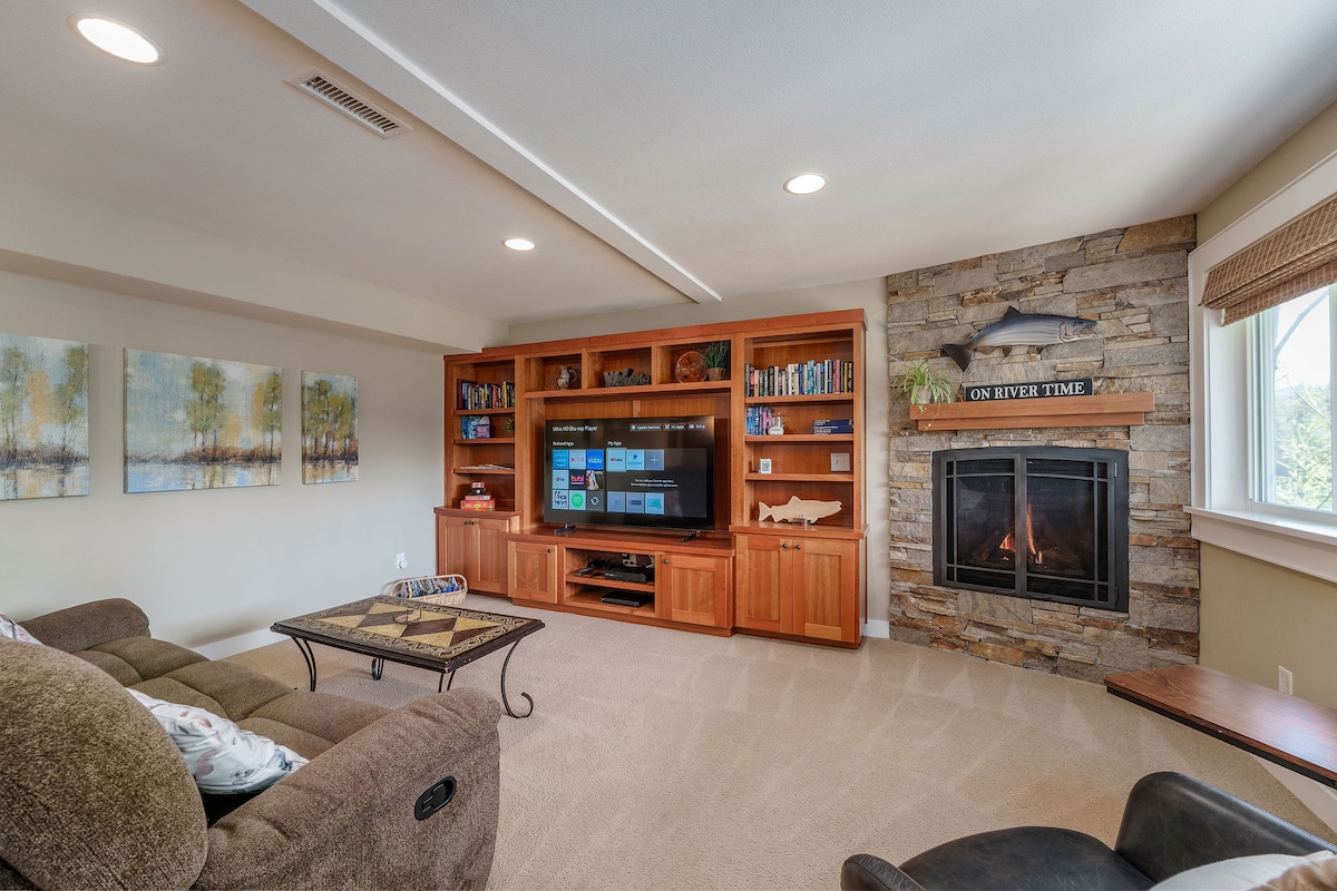 Experimenta la serenidad de la vida junto al río en nuestro encantador refugio privado ubicado en las tranquilas orillas del río Clackamas. Esta suite de invitados ofrece 1500 pies cuadrados de espacio habitable, con entrada privada y una amplia terraza que ofrece impresionantes vistas tanto del sereno estanque como del majestuoso río. Entra y descubre un refugio de confort y elegancia. La cocina gourmet cuenta con electrodomésticos de acero inoxidable, elegantes encimeras de granito y está totalmente equipada para tus necesidades culinarias.