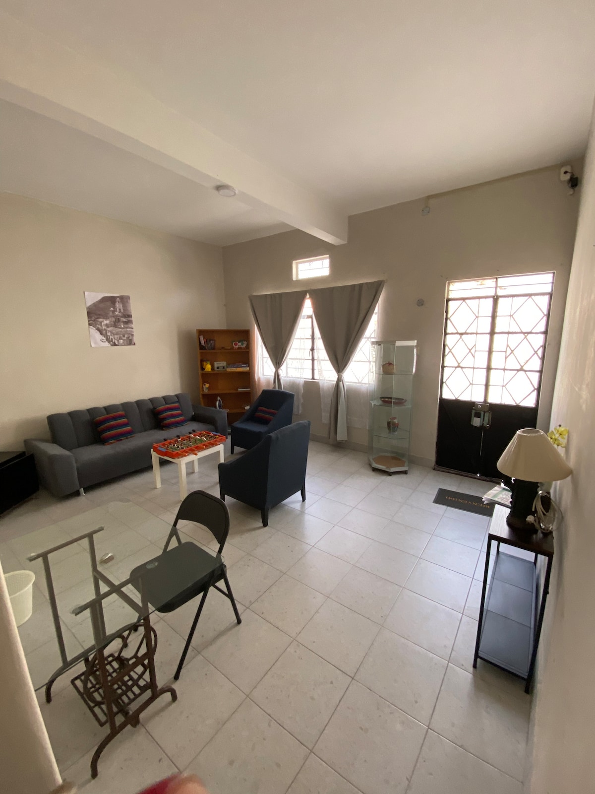 Departamento independiente, con dos recamaras, cama matrimonial y litera mat e individual, dos baños, sin estacionamiento, cámara en el exterior. Vista a la avenida, a solo dos cuadras del centro de la ciudad, fácil acceso a pie, a los atractivos mas importantes , como el Teleferico, Paseo del Rio, Biori, Alameda, Palacio de Hierro, Palacio Municipal, Cerro del Borrego, Atalaya de cristal, cafeterias tradicionales etc.