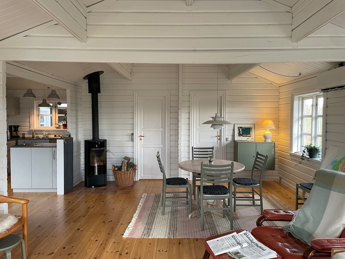 En la cima de una colina con vistas panorámicas de toda la esquina suroeste de Limfjorden se encuentra Oldes Hytte. La casa de verano, que data de 2021, tiene capacidad para 6 personas, pero con sus 47 m2 también es atractiva para escapadas de pareja, fines de semana con amigos y tiempo a solas. El precio incluye la electricidad. Recuerde traer ropa de cama y toallas. Es posible, previo pago, cargar un coche eléctrico con el cargador Refuel Norwesco. Esperamos que la cabaña se deje tal y como se recibe.