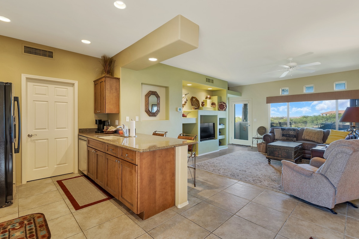 From the moment you arrive and throughout your stay, we expect you will find the mountain peaks of the Santa Catalina Mtns truly breathtaking, and here you'll have a front-row seat. This condominium unit at the Greens at Ventana Canyon has exceptional rare views from the living room, primary bedroom and private deck. This 2 bed, 2 bath first floor home with private master suite was just renovated and has luxurious furnishings. The Greens community offers three pools, spa and workout facility.