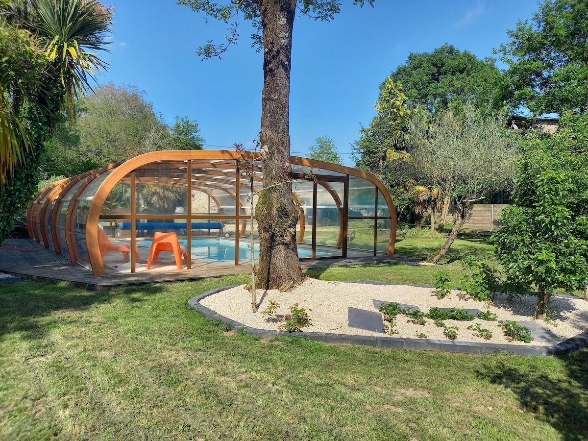 En el viñedo de Nantes, nuestra casa tiene capacidad para 4 personas como máximo (niños a partir de 5 años) en un ambiente tranquilo y relajante. Fiestas estrictamente prohibidas. Es 1 estudio, contiguo a nuestra casa, con 2 camas en un altillo abuhardillado y un sofá cama convertible en la sala de estar. Terraza privada al este; Acceso a 1 parte del jardín al oeste. Acceso directo a la piscina compartida de 12,50 m x 4 m cubierta y climatizada. De 8:00 a 22:00. Preferiblemente RESAS a la semana en las vacaciones escolares.