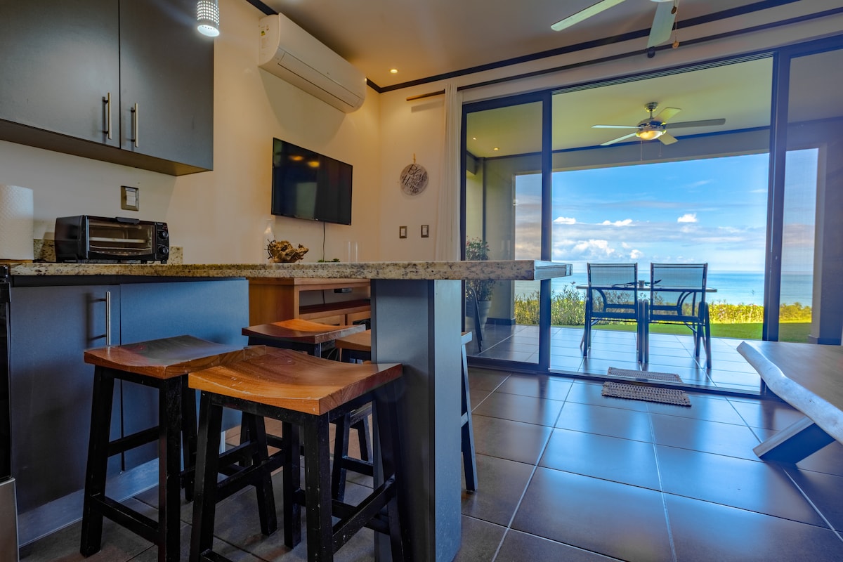 2-bedroom condo with beautiful views, perfect for a relaxing stay. The condo offers a master bedroom with ocean views and a second bedroom, both with Queen beds and en-suite bathrooms for privacy. Enjoy serene mornings and sunsets from the balcony, with tropical surroundings. The property includes a large, well-maintained pool for refreshing swims. Lush vegetation and local wildlife, like monkeys and toucans, enhance the peaceful atmosphere. A perfect mix of comfort and nature for your getaway!