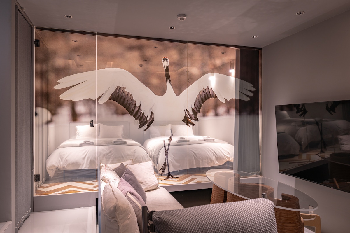 A solo una parada de las prisas de la ciudad, pero alejado silenciosamente de su ruido: Reikyo presenta una habitación tranquila diseñada para viajeros que valoran la calma, la luz y el minimalismo refinado. Este espacio con cama tamaño king combina elementos tradicionales japoneses con comodidad moderna, con sombras suaves emitidas a través de pantallas shoji y una paleta seleccionada de madera profunda, gris piedra e iluminación indirecta cálida. Disfruta de una taza de té a la luz de la mañana, cocina una comida sencilla en la cocina incorporada o simplemente relájate en silencio.