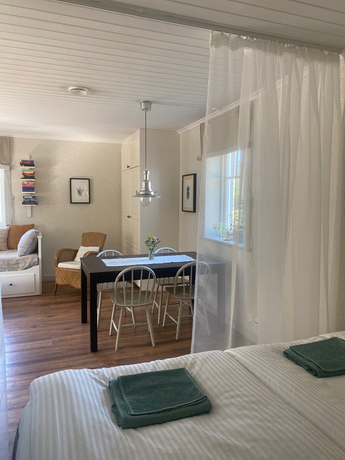 Precioso y bien planeado apartamento de 25 metros cuadrados en casa independiente en el patio. Cuenta con todos los servicios como cocina totalmente equipada, aseo con ducha y lavadora, así como alcoba para dormir con primera cama doble tamaño queen (160 cm). Patio privado donde podrás disfrutar del sol de la tarde. Aparcamiento gratuito en la entrada En coche: A 15 minutos de Gränbystaden A 15 minutos del centro de Uppsala A 7 minutos de Storvreta, aquí está el supermercado Ica y la estación de tren de cercanías para desplazarse sin problemas a Uppsala, Estocolmo y Gävle.