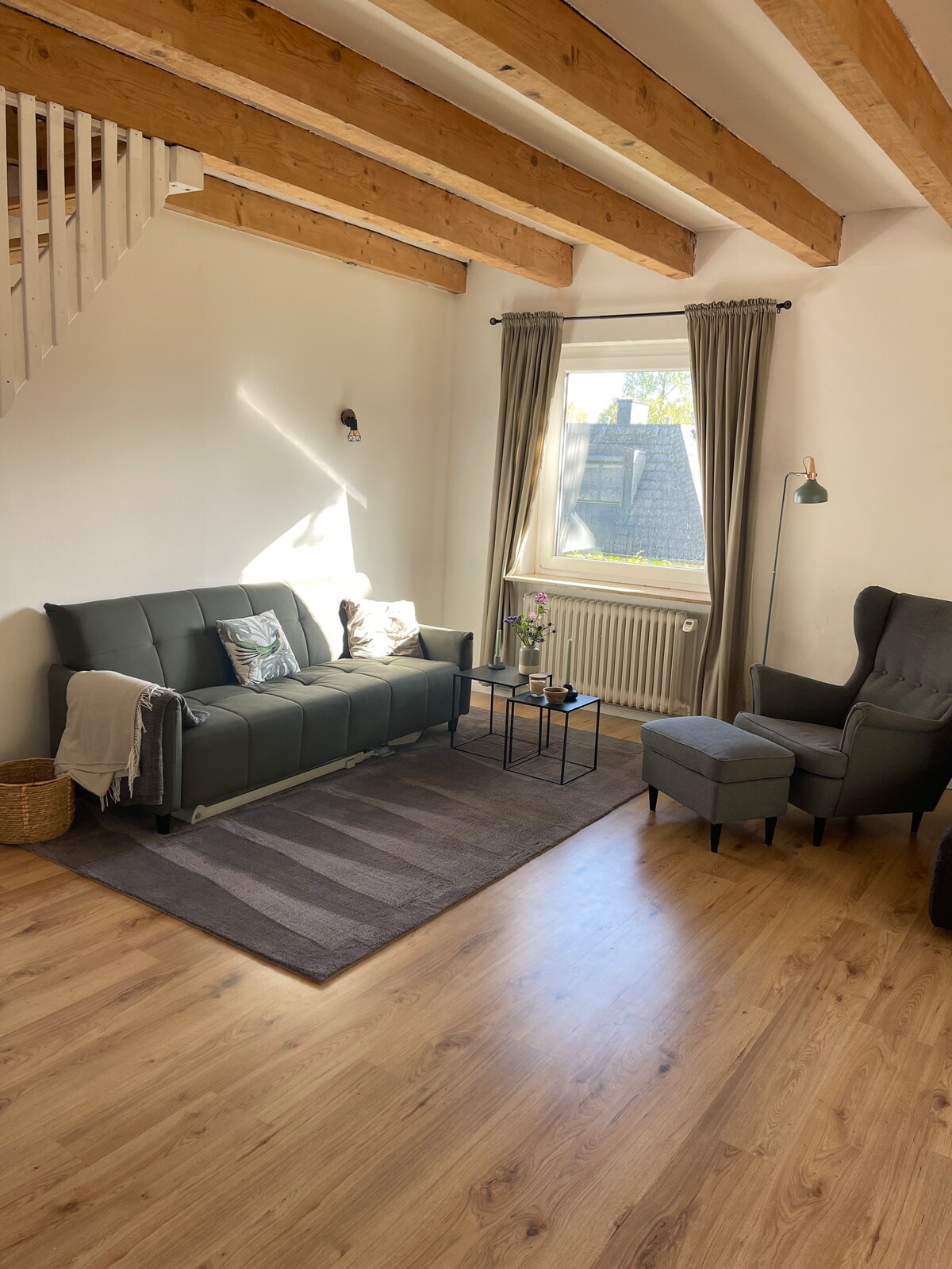 Centrally and quietly located apartment for max. 3 guests. The box-spring bed is in the living room together with the pull-out sofa bed. The kitchen is new and hardly used and equipped with all the things you need. The bathroom is also modern and like new. The staircase is a bit steep so unfortunately not wheelchair accessible. Glinde is on the outskirts of Hamburg and you can easily get into the city with the U2. We also have a few tips for Hamburg.