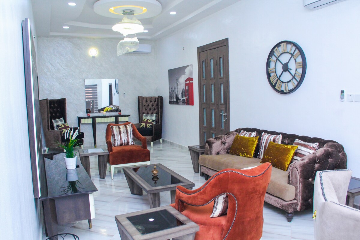 Sidemiwa Apartment - Luxurious stay, privately secured, 5 minutes from the MMA International Airport, is located in Lagos. Unwind in this peaceful and tastefully designed retreat. Blending comfort with contemporary style, the space offers cozy furnishings, ambient lighting, and a soothing atmosphere. Ideal for both work and relaxation, it’s a welcoming haven where you can rest, recharge, and feel right at home. 24/7 Electricity, Solar Energy, fast speed Wi-Fi Internet.