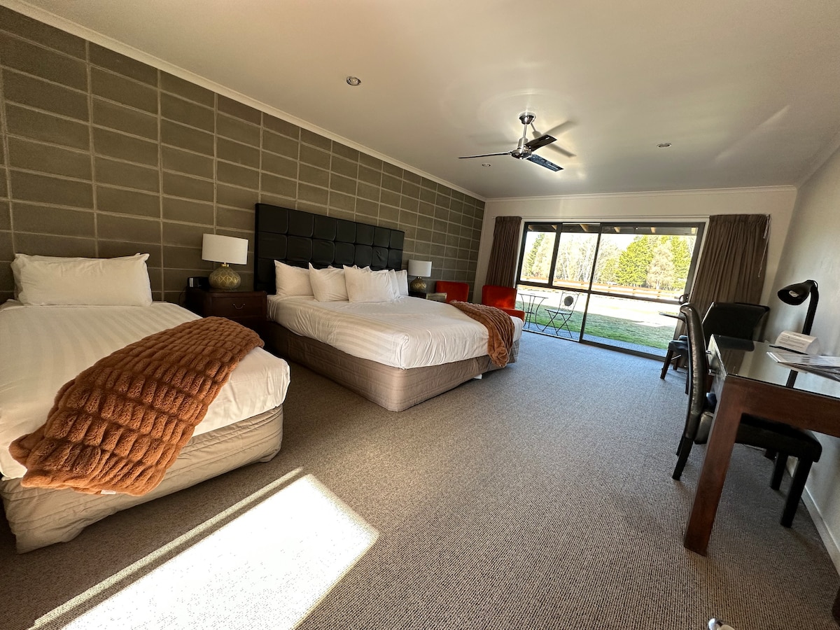 Nuestra habitación doble estándar en Swiss-Belresort y Villas Coronet Peak se puede convertir en una habitación doble previa solicitud. Ponte en contacto con nuestro equipo si quieres este arreglo, aunque está sujeto a disponibilidad. Si necesitas una cama supletoria, serán $ 50 adicionales por cama por noche (sujeto a disponibilidad). Nuestra habitación de hotel admite mascotas, solo avísanos para que podamos preasignar tu habitación. Se aplica una tarifa única por mascota de $150 durante toda la estadía, independientemente de la duración.