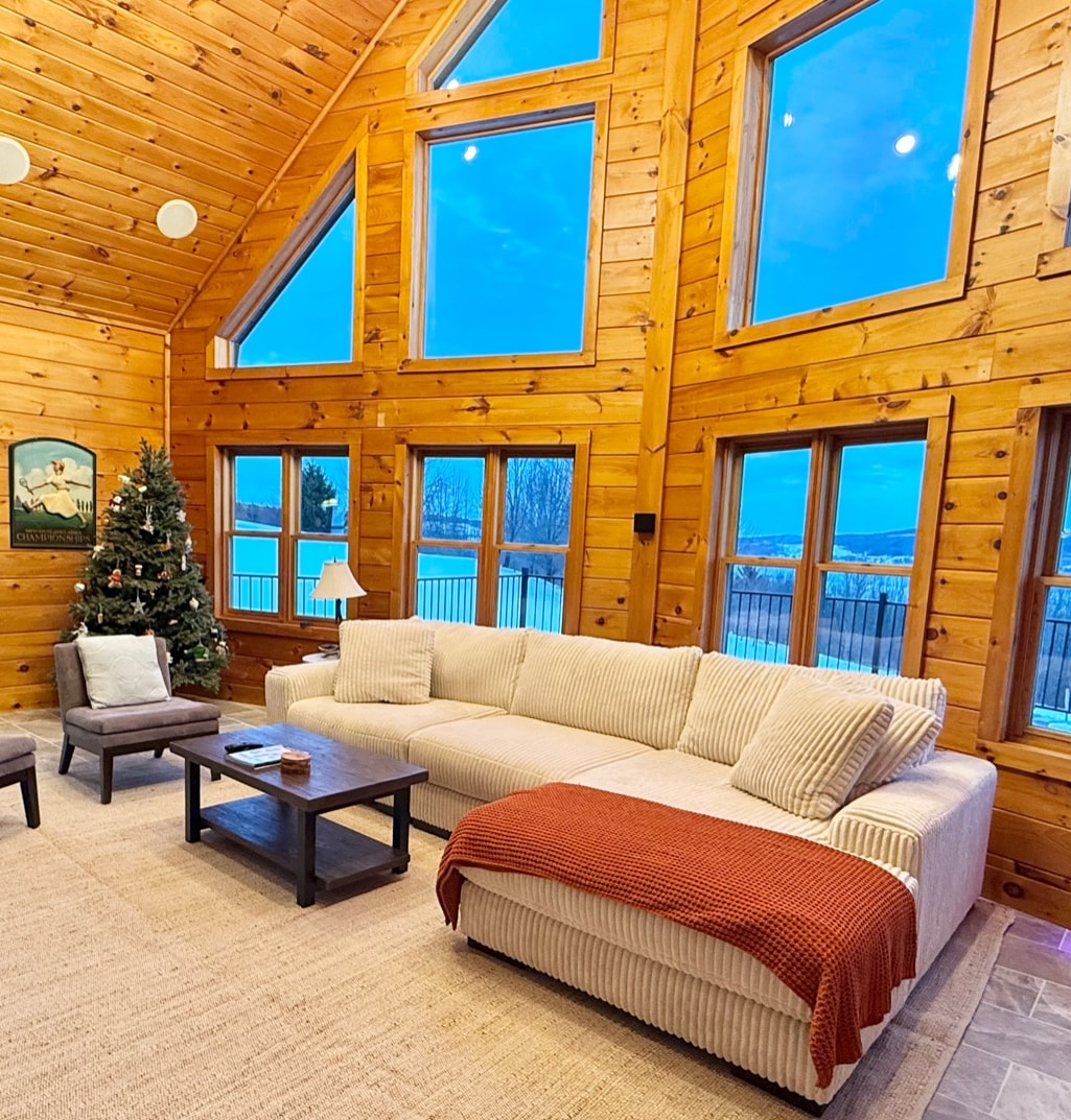 Chalet apto para mascotas con jacuzzi, costa privada, sala de juegos, cafetería, rincón de lectura y acogedora estufa de leña. Ubicado entre los árboles, este alojamiento ofrece: o Tu propia costa privada con chimenea, cañas de pescar, kayaks y bote de remos; o Jacuzzi con vistas al lago; o 5,5 acres para explorar con senderos boscosos, acantilados de piedra caliza y vistas invernales; o Sala de juegos con ping pong, hockey de aire, futbolín y Xbox; y o Proximidad a cascadas, caminatas, ciclismo y esquí.