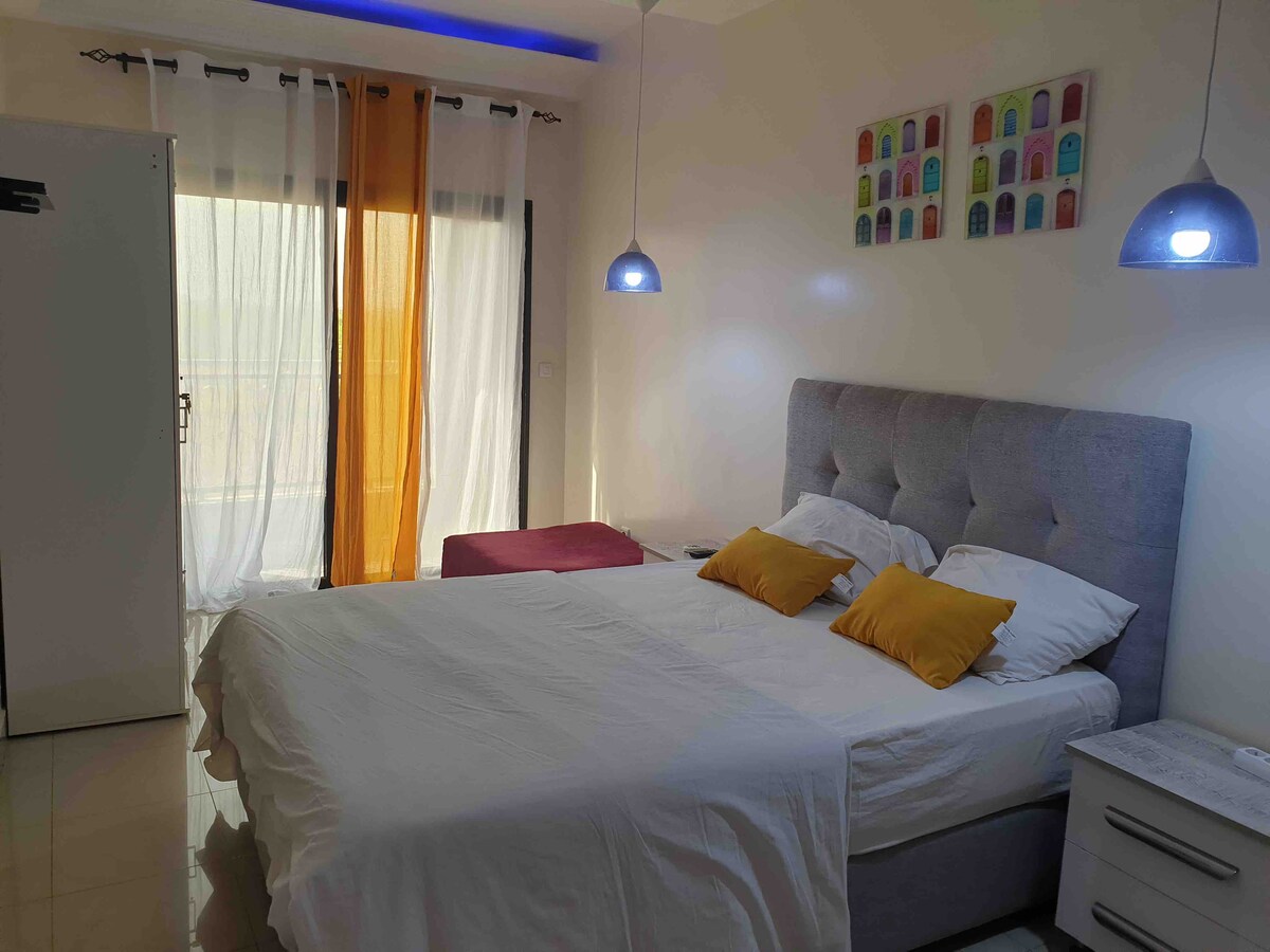 El lugar ideal para un viajero de negocios o una pareja que ofrece unas vistas impresionantes de la ciudad de Dakar. El espacio incluye una acogedora habitación equipada con aire acondicionado, TV inteligente, frigobar, sala de estar, ascensor privado, balcón privado con una zona de barbacoa abierta... Además, este lugar está cerca de la costa de Dakar, a solo 5 minutos a pie . El lugar es amplio, ventilado y luminoso . El lugar perfecto para escapar de la rutina de una ciudad vibrante. ¡Te damos la bienvenida a casa!