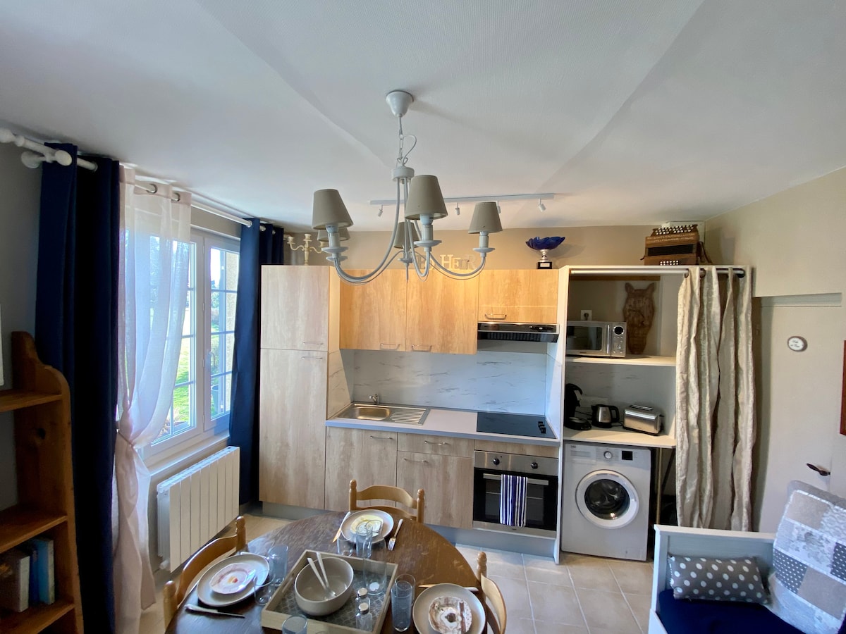 En pleno centro histórico de Dives-sur-Mer y a 1 km de las playas de Cabourg, la dependencia se encuentra en una casa que data de 1870. De unos 70 m2, consta de una sala de estar, una cocina equipada, una SDB con inodoro separado. Arriba, dos habitaciones: 1 con una cama doble y 1 más con 3 camas individuales. Totalmente independiente con acceso privado. El gimnasio, la zona de bienestar y la sala de juegos se encuentran en la casa principal, a los que se accede a través del jardín.