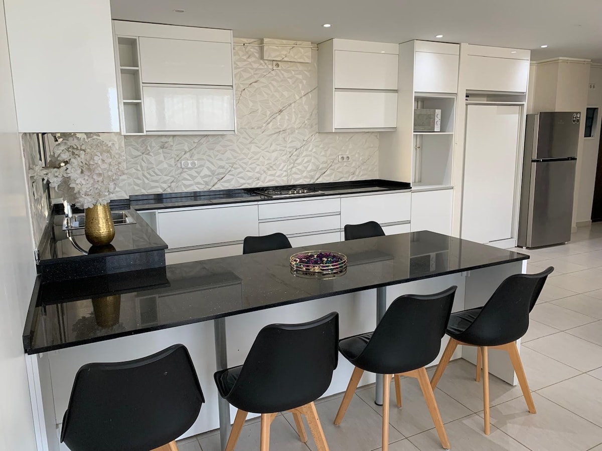 Apartamento familiar totalmente equipado 📌Una cocina moderna: nevera, cocina, horno, microondas y utensilios para cocinar como en casa 📌Equipamiento para bebés: cuna, trona y accesorios adaptados para simplificar su estancia 📌Una acogedora sala de estar con sofá cama con TV vía satélite, que ofrece una amplia selección de canales En la residencia: ✔️Un supermercado ✔️Un gimnasio ✔️Una mezquita en el edificio ✔️Un campo de fútbol ciudad para los amantes del deporte ✔️Un parque infantil