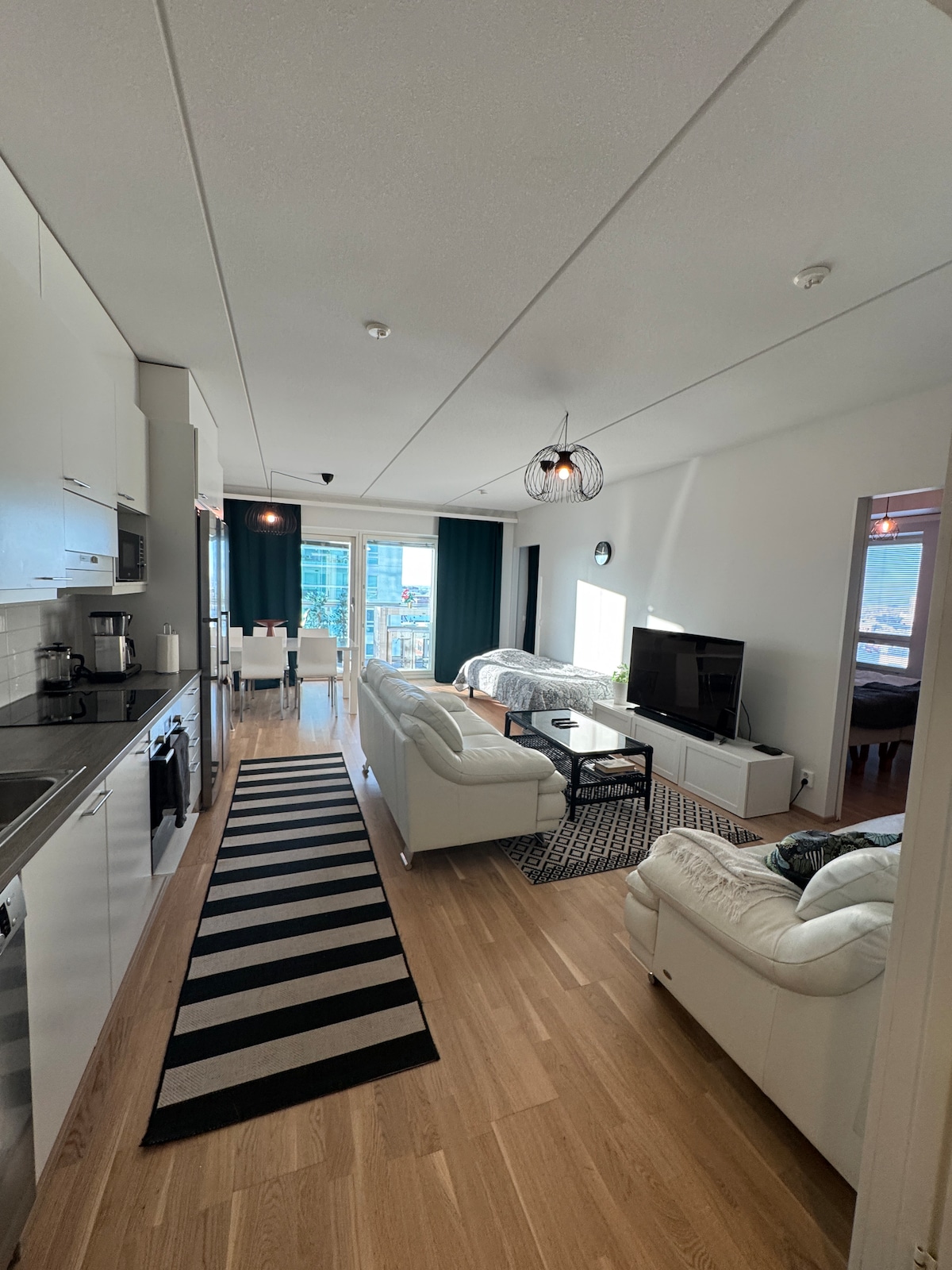 Moderno apartamento de un dormitorio de 47,5 metros cuadrados a solo 10 minutos a pie del centro de la ciudad. Fácil acceso al transporte público y a todos los servicios que ofrece la ciudad. El apartamento incluye cocina totalmente equipada, TV inteligente UHD de 49 pulgadas, wifi rápido y sauna propia. En el dormitorio hay una cama tamaño queen y en la sala de estar un colchón extra de 80 cm. ¡El apartamento es bueno para grupos de 3 personas! Aparcamiento en garaje cerrado. Posibilidad de cargar vehículos eléctricos por 20 c/kWh.
