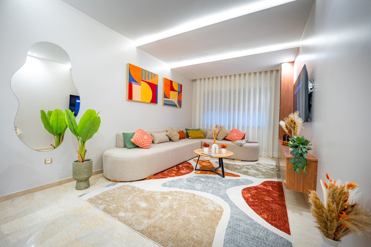 Departamento moderno a 5 minutos del aeropuerto CMN, con acceso a la piscina, balcón privado con vista a la piscina, wifi de fibra y llegada autónoma las 24 horas, los 7 días de la semana. Dormitorio con cama tamaño queen, sala de estar luminosa y cocina totalmente equipada. Ideal para viajeros en tránsito, huéspedes de negocios y familias. A 30 minutos de Casablanca, a menos de 1 hora de Rabat. Llegada flexible, sin esperas; su comodidad es nuestra prioridad.