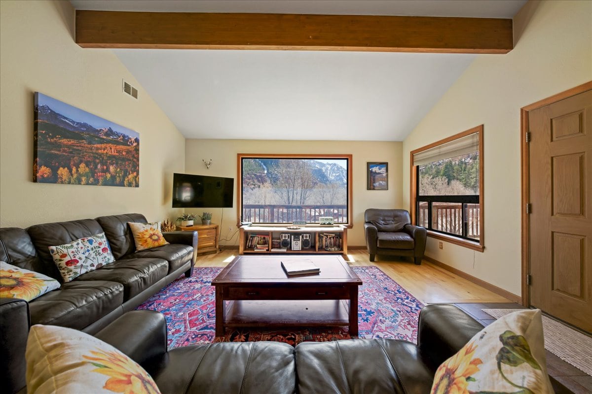 Our townhome is an ideal base for all your alpine adventures in the San Juans. Come for world-class ice climbing, trail time in Mt. Sneffels wilderness, downhill skiing in Telluride or Ouray or just to relax in the Hot Springs right across the parking lot. With views out every window and a private deck to take it all in, we hope you find yourself in love with this "little Switzerland" mountain town like we are. This is our retreat, we are happy to share it with you and let it be yours as well!