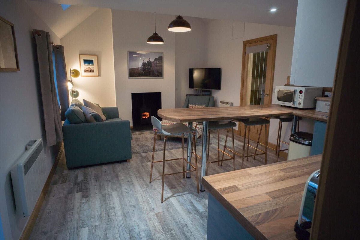 This unique place has a style all of its own. set on the top of a hill with stunning views over the sound of Sleat, taking in breathtaking views of the Isles of Eigg and Rum and in the distant the most westerly point of Scotland. Either sit and relax outside on the decking or down at the fire pit enjoying the peace and tranquility. Enjoy your relaxing break and cosy up inside with under floor heating through out and a warming glow from the log fire.