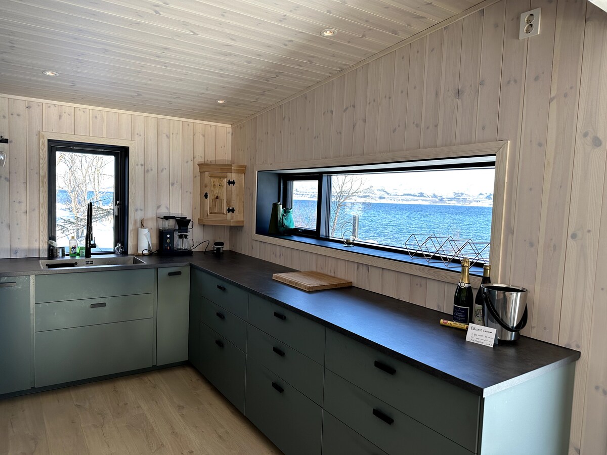 Our modern, well-equipped home sits right by the sea with breathtaking mountain views, surrounded by pristine Arctic nature. Spot reindeer, otters, moose, or even whales, and watch the Northern Lights from the porch. Steps away, enjoy a panoramic sauna by the water. A traditional BBQ hut is available as an optional rental. This is our beloved home, and many guests tell us they fall in love with it too. Few places blend comfort and wilderness like this. We never tire of it—and hope you will, too.