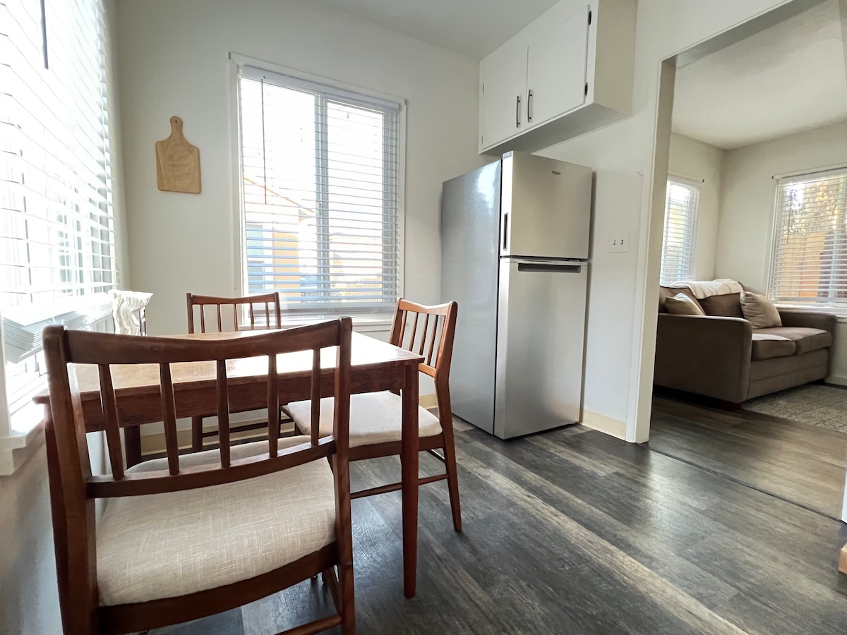 RELÁJATE y DISFRUTA en nuestra hermosa, privada, espaciosa, IMPECABLE y tranquila «Homestay» en la hermosa Carmel. Mobiliario encantador, maravillosa cama tamaño queen y ropa de cama de lujo. ¡Mini cocina totalmente equipada! Una entrada privada cerrada a un pequeño jardín te espera... una gran escalera ancha te lleva hasta una espaciosa casa privada de 1 dormitorio totalmente equipada de 1000 pies cuadrados llena de luz con terraza privada con asientos. ¡Camina hasta el pueblo, el río y las bodegas! Breve trayecto panorámico en coche hasta Carmel-by-the-Sea, Pebble Beach y Big Sur.