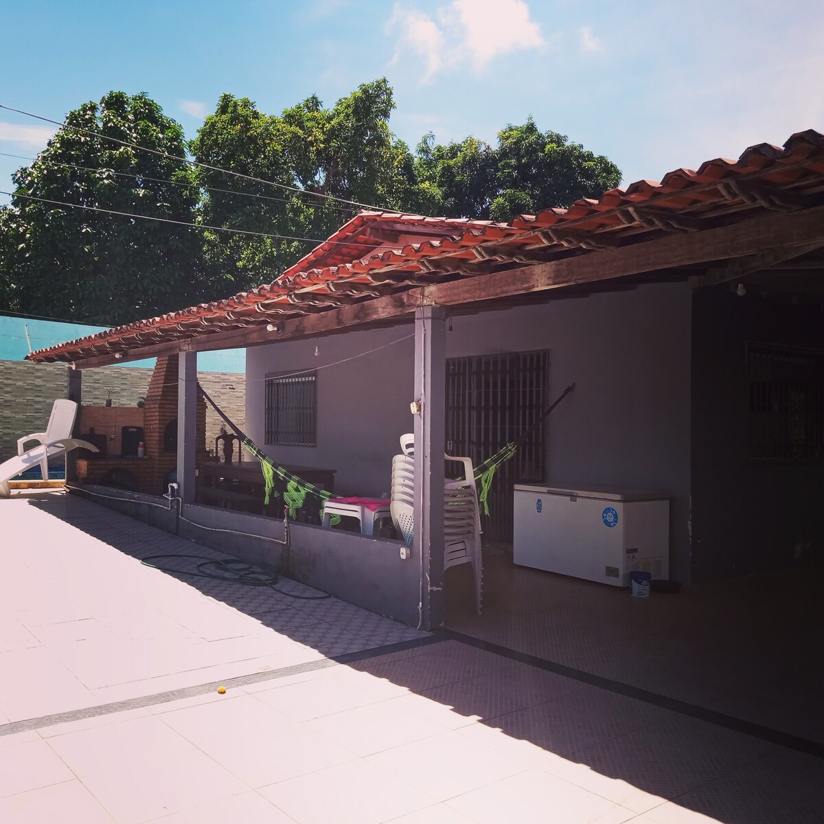 Relájate con toda la familia en este alojamiento tranquilo. Obs; El precio del alojamiento incluye el consumo de electricidad de hasta 13 kWh por día. El uso continuo de aire acondicionado u otros equipos de alto consumo puede generar un excedente, que se cobrará por separado de acuerdo con la medición del consumo real (check-in/check-out) y la tarifa actual. La tarifa actual es de R$1,28 por KHW Según lo medido en el reloj de medición del concesionario