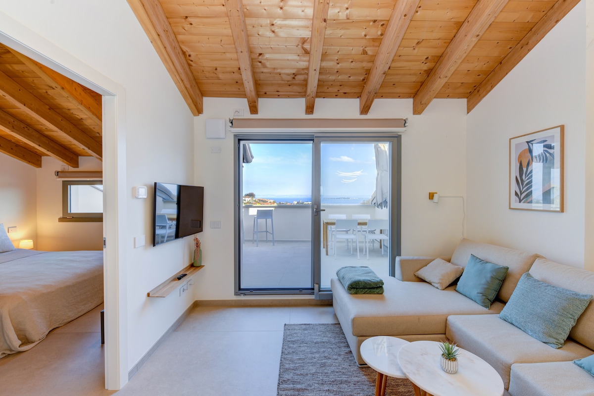 Godetevi la nostra casa, un appartamento di design, dove pezzi d'arredo iconici si fondono con tocchi vintage. Recentemente ristrutturato, offre tre camere grandi e tre nuovi bagni indipendenti. Al primo piano un ampio balcone offre una vista sul borgo di Garda e sulla Rocca. Al secondo piano un'ampia vetrata crea un ambiente unico tra il soggiorno aperto, la terrazza, il cielo e il lago. A 5 minuti a piedi dal lago, il nostro appartamento offre un esclusivo posto auto permanente.