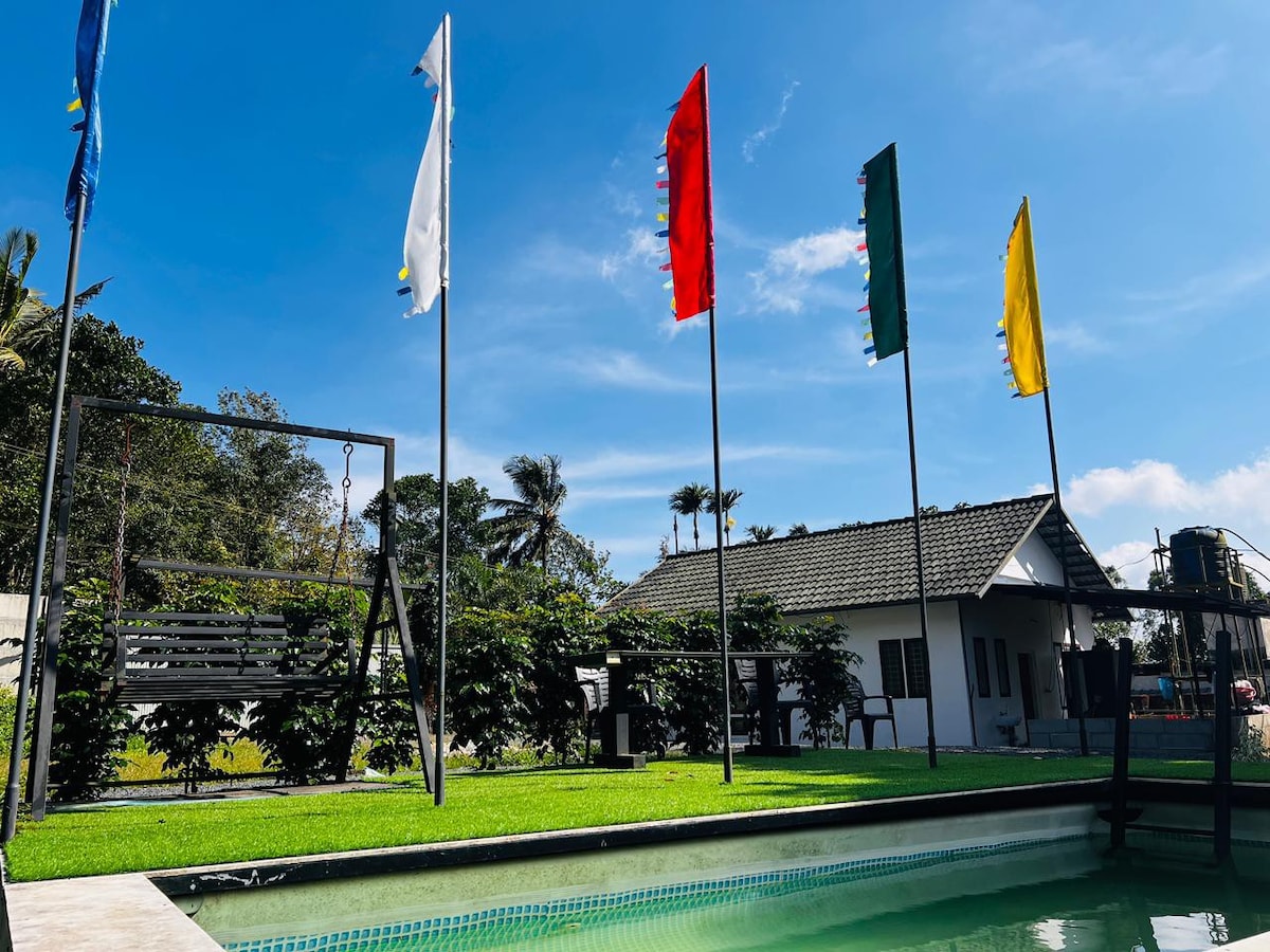 ¡Te damos la bienvenida a nuestra estancia en casa de inspiración danesa! Somos Alan y Neetha, ingenieros de software que trajeron elegancia nórdica a Wayanad. Nuestra casa combina la simplicidad escandinava con la exuberante vegetación de nuestra plantación de 5 acres de caucho, café y árboles frutales. Disfruta de nuestra piscina privada rodeada de belleza tropical o relájate en nuestro cenador, el lugar perfecto para tomar café por la mañana o conversaciones nocturnas con vistas a la plantación. Nota: Esta es una experiencia completamente libre de anfitriones sin instalaciones de cuidador o conductor