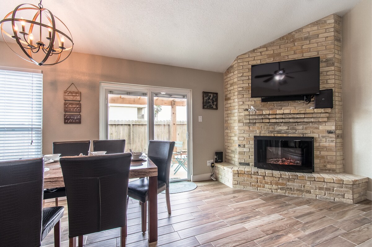 Esta es una casa preciosa y espaciosa llena de comodidades. Se encuentra en una ubicación ideal, muy cerca de lo mejor que Corpus Christi tiene para ofrecer: ¡a 10 minutos de la playa de Padre Island, a 2,2 millas de la Universidad de Texas A&M CC, del Bay Area Hospital, a 15 minutos del centro de la ciudad y mucho más! Relájate y desconecta en más de 2700 pies cuadrados de espacio habitable o pasa tiempo haciendo barbacoas al aire libre con vistas a nuestro antiguo campo de golf. ¡Gran alojamiento para grupos grandes, entretenido y relajante!