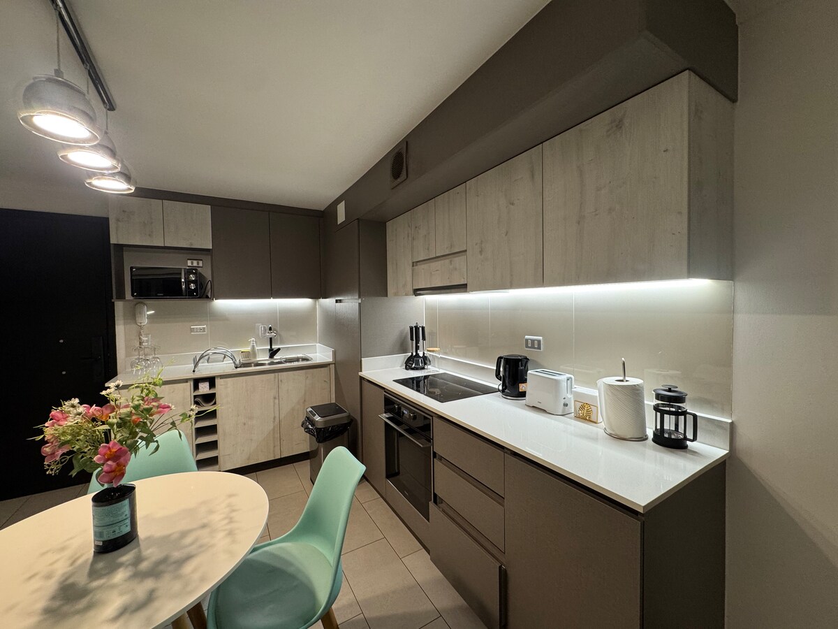 Disfruta de un lujoso, moderno y acogedor Depto, perfecto para explorar la ciudad y descansar. Ubicado en una zona central, ofrece estacionamiento privado y comodidad. Cuenta con moderno Living Comedor, Smart TV, cocina equipada y 2 baños, uno en suite. Dormitorio con cama amplia, suaves sábanas, vestidor y baño privado completo. Depto a pasos del Centro comercial y restaurantes. ¡Reserva y vive una experiencia única en este encantador alojamiento!