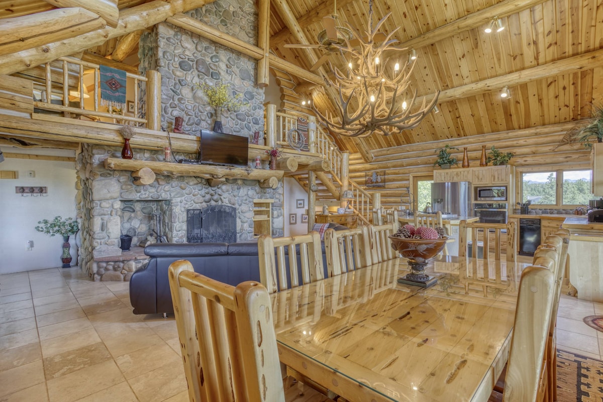This amazing location is walking distance to town, great restaurants, the world's deepest Hot Springs, swimming pool, playground, the San Juan River and Reservoir Hill - great for hiking. John Wayne stayed here while filming "The Cowboys". The cabin's focal point is a custom fireplace made of precious stones from all over the world. If you are looking for an intimate couples getaway, some alone time, a break from business, or just enjoying your family, you have found the perfect place!