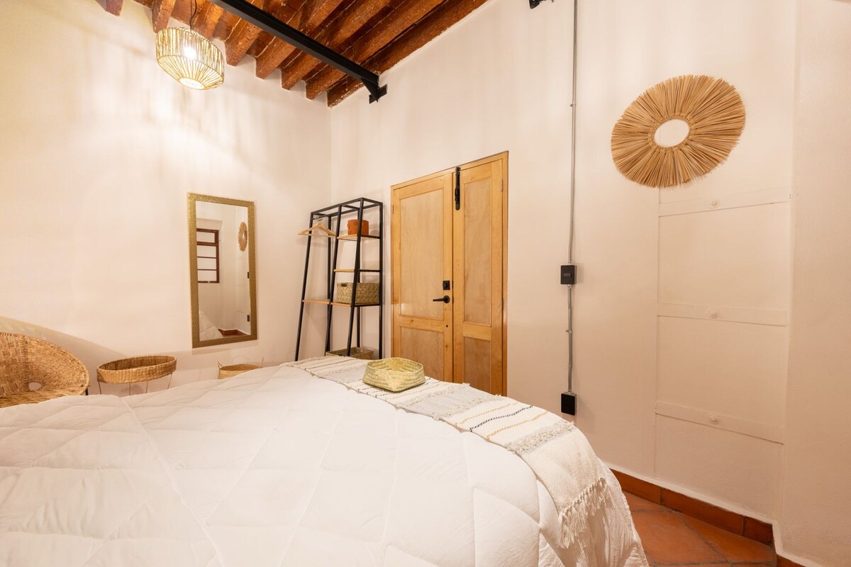 Nuestro suite cuenta con una cama King, baño, privado, cocina equipada dentro de la dentro de una distribución armoniosa y confortable en una ubicación excepcional a una pequeña cuadra del Zócalo de la ciudad de México, en zona de boutiques como El Palacio de Hierro, la primera y más sofisticada tienda departamental en México, abrió sus puertas en 1891 Joyerías en un día, puedes visitar, la Catedral, Palacio Nacional, el Palacio de Bellas Artes, diversos museos y restaurantes, “El Cardenal”.