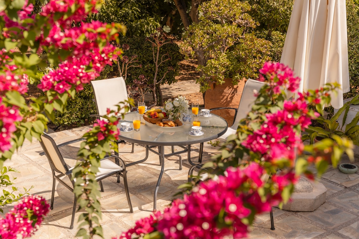 Nuestra villa, parte de CretanRetreat, ofrece bella vista en zona tranquila, perfecta para familias, parejas y exploradores. 98 m², 25 min de Heraclión, 15 min de Cnosos, 30 min del aeropuerto. ‣ 3 dormitorios ‣ 2 baños ‣ 2 camas Queen ‣ 4 balcones ‣ Jardín ‣ Estacionamiento en el lugar ✭“Uno de los mejores Airbnb en los que hemos estado! Gran ubicación con vistas preciosas,muy tranquila, rodeada de olivos. La villa tiene carácter y es ideal para visitar Knossos y Heraclión.”