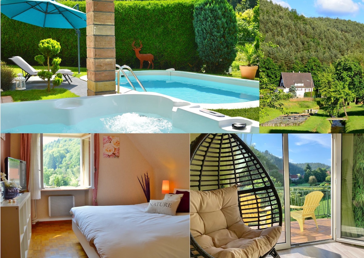 Encanto, bosque y senderismo con jacuzzi y piscina