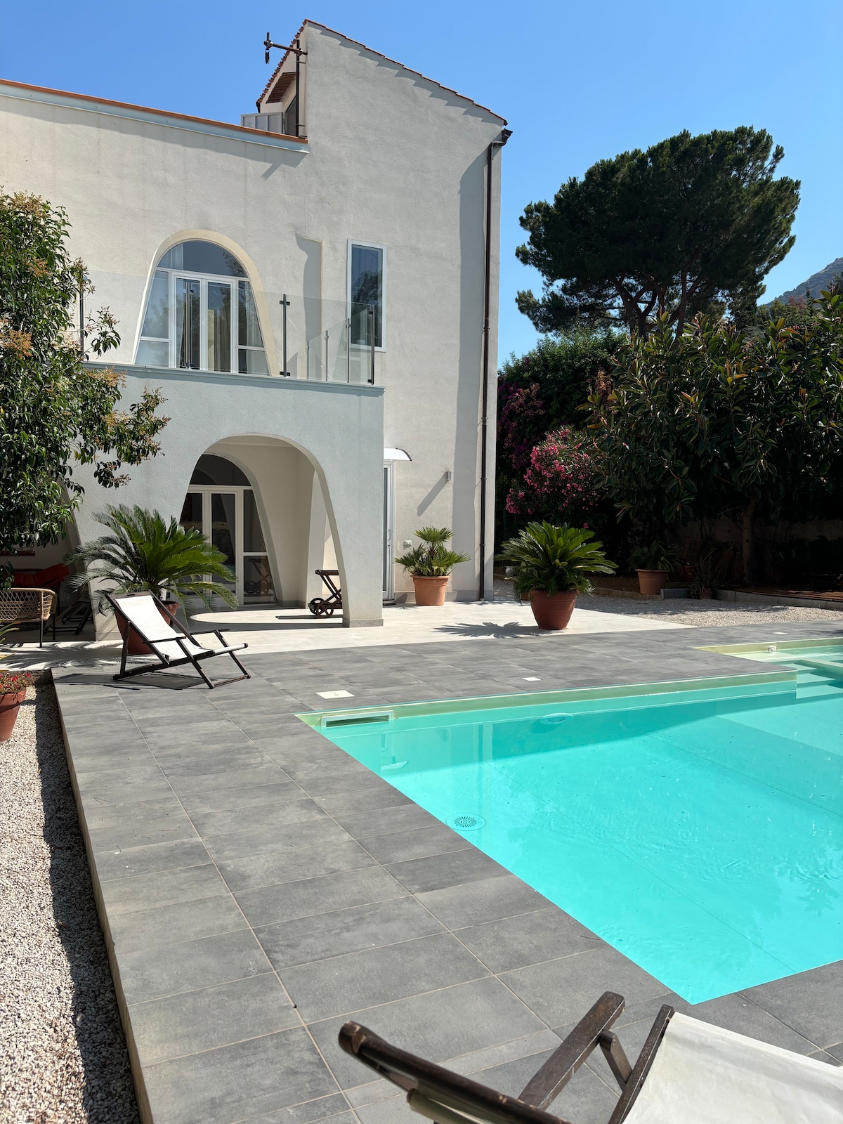 La villa tiene unos 300 metros cuadrados cubiertos en dos plantas, con amplias terrazas con vistas al mar ubicadas dentro de un bosque de pinos; el acceso es a través de una carretera privada cuesta arriba dentro de la villa (aproximadamente 25 metros). La villa se encuentra en el paseo marítimo de Addaura, la costa norte de Sicilia a pocos km del centro de Palermo y las playas de Mondello y Vergine Maria. Se puede llegar al mar a través de un punto de acceso ubicado a 70 metros de la villa al otro lado de la carretera.