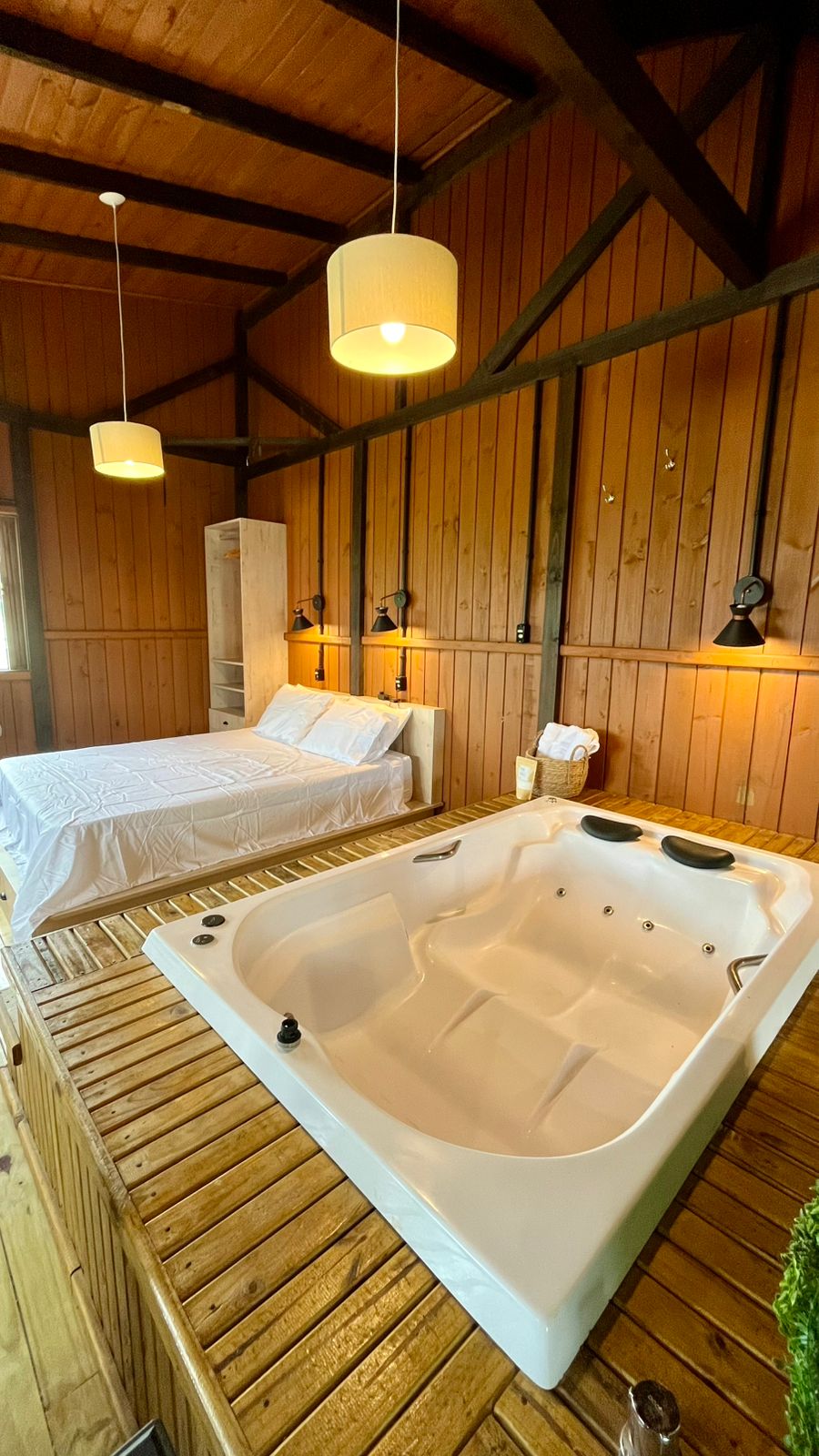 Chalet exclusivo para parejas - Wi-Fi - Cocina completa ( microondas, sandwichera eléctrica, hervidor eléctrico, ollas, cocina cooktop ) - Frigobar - Ropa de cama y toallas - Bañera de hidromasaje - Chimenea - Cama Box King - Espuma de baño - Desayuno completo - Excelente lugar para descansar y disfrutar de la naturaleza No admitimos mascotas