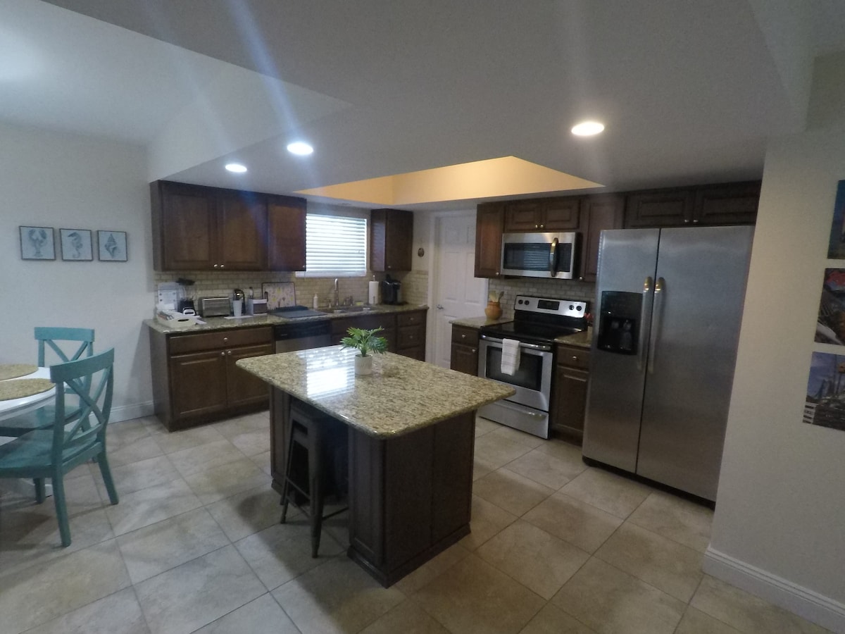 ¡Pasa tus días en el paraíso de los amantes de la playa cuando reserves esta encantadora casa familiar! Disfruta del sol en el espacioso patio, un oasis en el patio trasero lleno de árboles frutales y flores tropicales, iluminación ambiental, cenador, columpio, barbacoa y un montón de tumbonas y muebles para relajarte. Prepara comidas en la cocina totalmente equipada (¡artículos de desayuno para llevar incluidos!). Disfruta de la sensación de casa de campo junto al mar de las habitaciones, cada una equipada con TV digital. ¡A solo 3 minutos del centro de Stuart y a minutos de la playa!