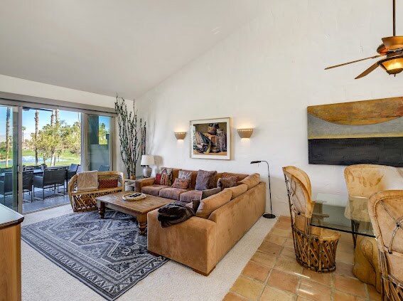 Close to Coachella/Stagecoach/ACRISURE - This spacious , street-level 2 BR/2 bathroom condo comes with a Gameroom complete with ping-pong & library. A view to the fairway of the Challenge Golf Course & you are steps away from a swimming pool and hot tub. Centrally located in Palm Desert, 20mins from Palm Springs, Coachella and 45mins from Joshua Tree. An indoor fireplace, BBQ on the patio, mountain views and palm trees for days makes this a perfect respite from the hustle and bustle.