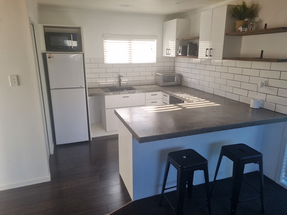 Un espacio privado único, anexo a la casa principal pero con una entrada completamente independiente. Un espacio recién decorado con baño privado, cocina americana y un patio al aire libre para relajarse bajo el sol. Hay acceso a la lavandería detrás del garaje, que incluye una tina de lavado, lavadora y nevera. Los huéspedes también pueden utilizar la barbacoa al aire libre. Todo esto es gratuito. En una ubicación céntrica a poca distancia a pie de los mejores pubs, restaurantes y tiendas que Palmerston North tiene para ofrecer.