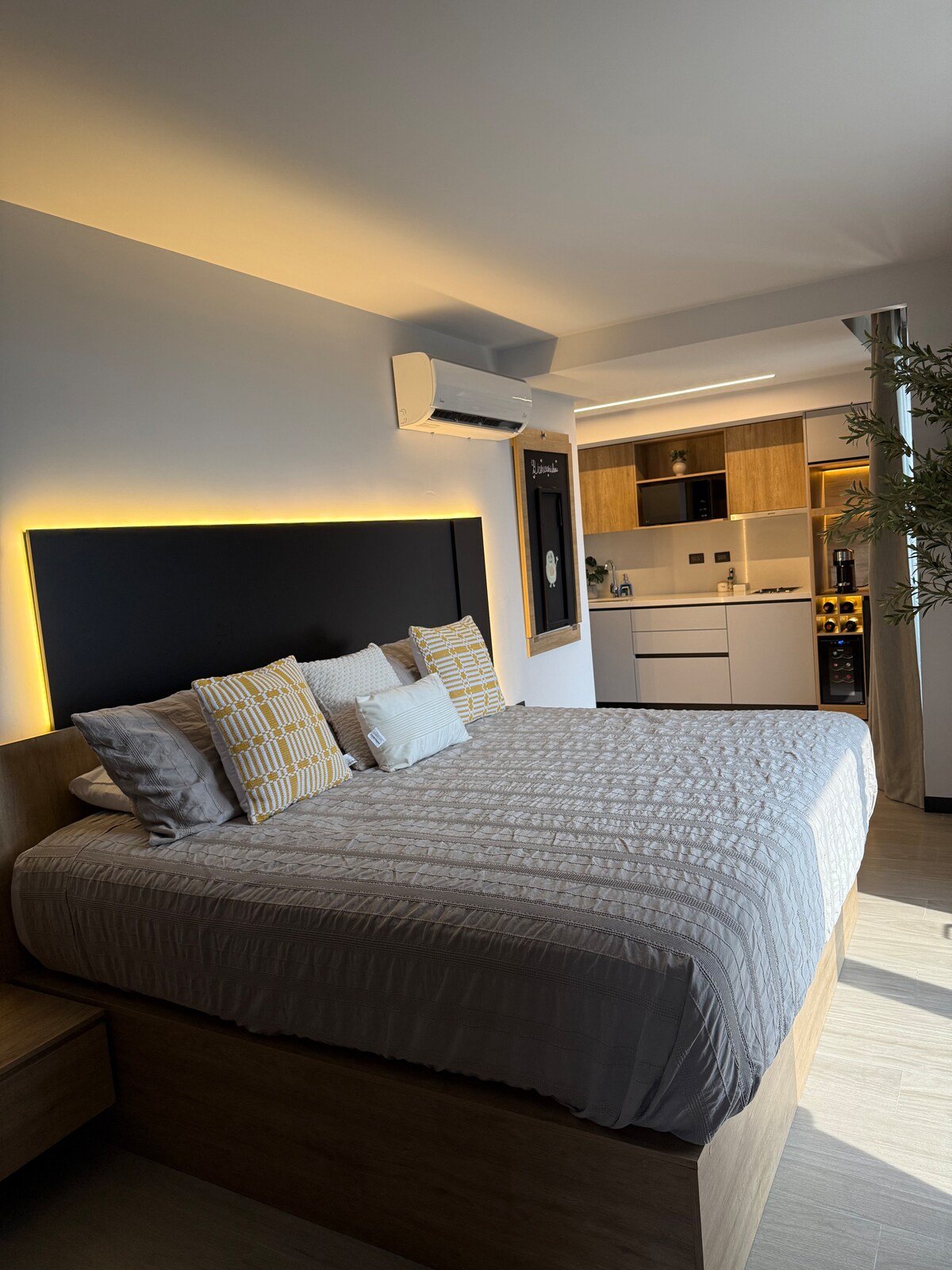 Hermoso y elegante Loft muy cerca del centro de Tlaquepaque donde encontrarás experiencias culinarias, culturales, amenidades y vida nocturna, a unos minutos caminando del tren que conecta toda la ciudad. El Loft cuenta con Aire acondicionado en habitación, área de cocina y sala, cuenta con ducha de lluvia de alta y media presión, cerradura digital, pantalla 4K, internet de alta velocidad 210 Mbps, y sensor CO2. No cuenta con cochera Disfruta de una hospedaje con estilo y elegancia