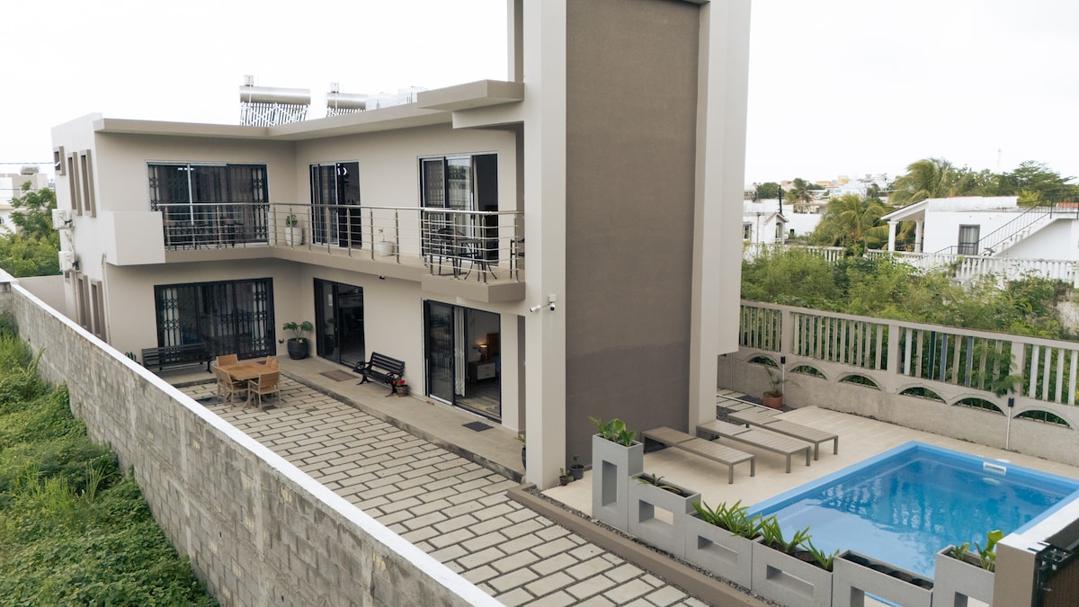 Te damos la bienvenida a Villa Le Dodo, un refugio de tranquilidad exquisitamente diseñado ubicado detrás del animado centro comercial La Croisette en Grand Baie. Sumérgete en una estancia verdaderamente distintiva, con acceso a una espléndida piscina, una tranquila sala de estar y un gimnasio totalmente equipado. Con una ubicación céntrica, este oasis ofrece una fusión ideal de serenidad y accesibilidad a la autopista, los servicios, los restaurantes, la atención médica, el transporte público, las atracciones locales y la impresionante belleza de las playas del norte.