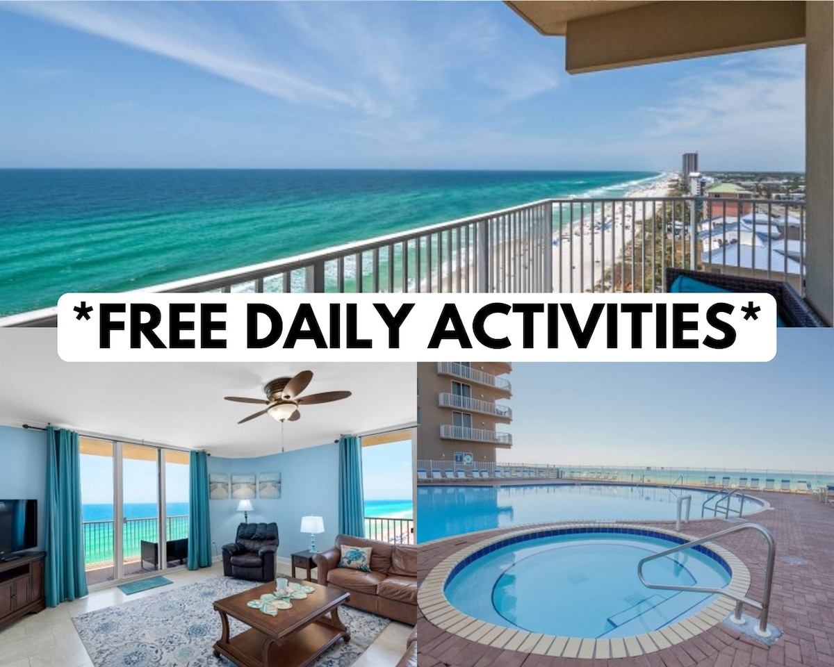 Spacious, Family Get-Away Spot, right-on-the-beach, with Incredible Views, Resort Amenities Galore, Beach-side Pool and Tiki Bar, Children's Pool and Deck Activities, Arcade Room, Arts & Crafts Programs, Fitness Center, Starbucks Cafe, Sky Bar Lounge, Ice Cream Shop and On-site Gift Shop. Near Pier Park Gulf World, Waterparks, Go-cart Tracks, Mini-golf & Top Golf coming soon, Fishing, etc. Walking distance from PCB's Famous Sharky's and other great local restaurants.