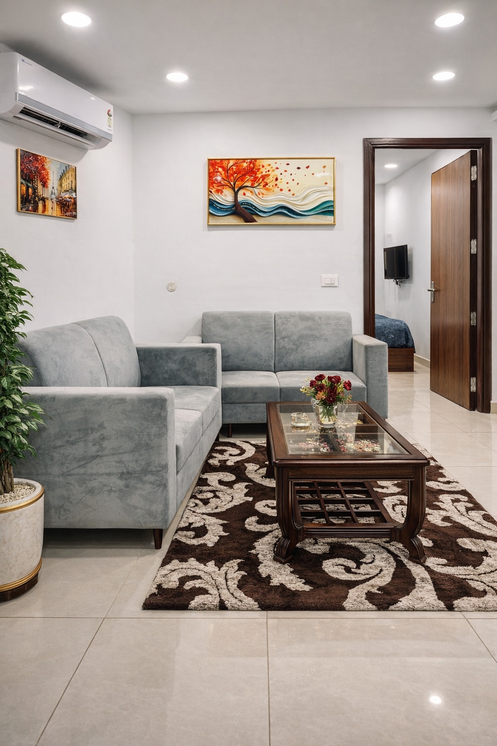 Experience boutique living at this premium 3BHK by MG Luxury Stays. Featuring elegant interiors, warm lighting, 3 spacious bedrooms, 3 bathrooms, a stylish living area, fully equipped kitchen, and high-speed Wi-Fi. Perfect for families, corporates, NRIs, and long stays. Enjoy comfort, design, and convenience in a peaceful Panchkula location.
