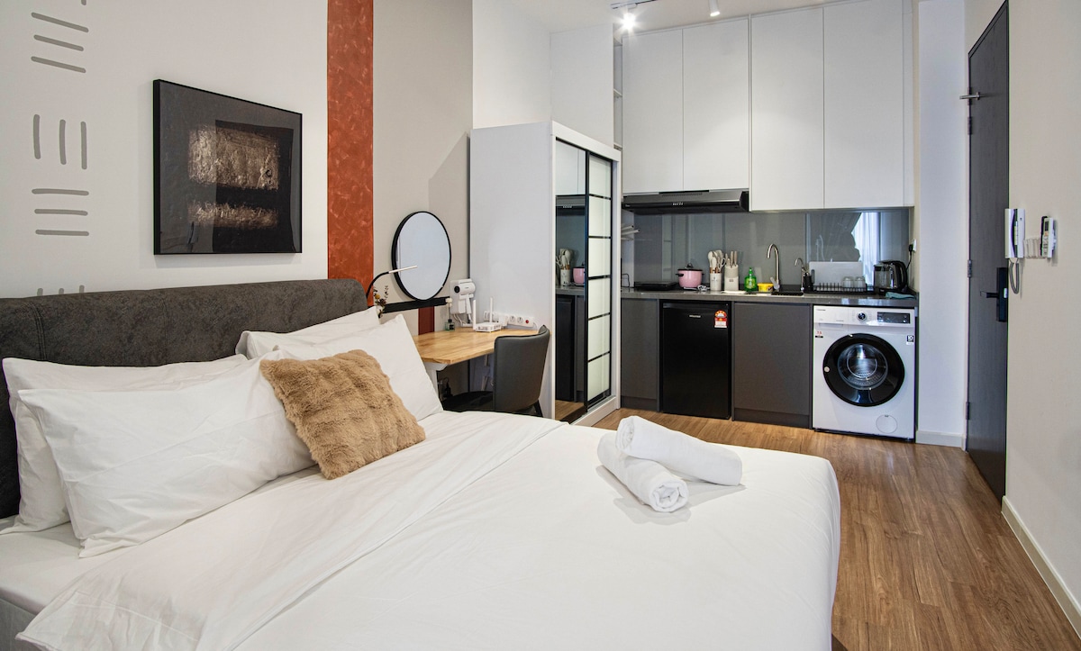 Residencia 📍Pertama ¡Te damos la bienvenida a Grey City! Este estudio está recién diseñado con mucho amor, combina la decoración contemporánea con comodidades modernas y una experiencia, todos pueden disfrutar especialmente del momento del jacuzzi con tu amor y pantalla de proyector de 100pulgadas con Netflix. Este lugar único tiene un estilo propio, ofrece un ambiente acogedor, limpio, tranquilo y refrescante para parejas. ¡Ven y experimenta en Grey City! Nos vemos.