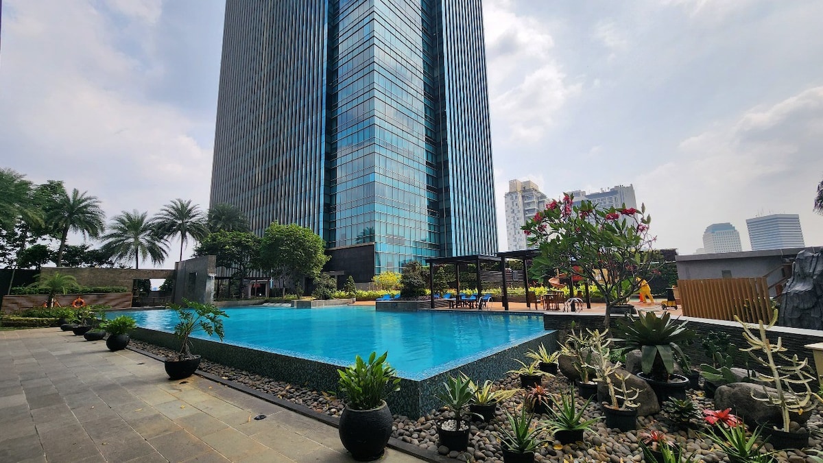 Administrado profesionalmente por Kozystay Admira la vista de la ciudad desde la comodidad de este elegante apartamento de 1 dormitorio estratégicamente ubicado en el centro de Yakarta (distrito financiero de Yakarta - CBD). A poca distancia de los restaurantes y cafeterías más de moda de Yakarta y a pocos minutos en auto de las principales atracciones de la ciudad. DISPONIBLE PARA LOS HUÉSPEDES: + Llegada digital + Limpieza profesional (desinfectante) + Servicios de calidad del hotel y sábanas frescas + Wifi de alta velocidad y TV por cable gratuitos + Acceso gratuito a Netflix