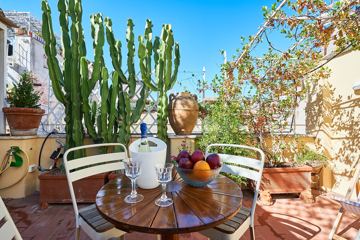 Luminoso y elegante apartamento con hermosas vistas a los tejados de Roma a solo unos minutos a pie desde el Panteón, Campo dei Fiori, plaza Navona y Piazza Venezia. Completamente remodelado con gusto y atención al detalle, es el lugar perfecto para disfrutar de la Ciudad Eterna.