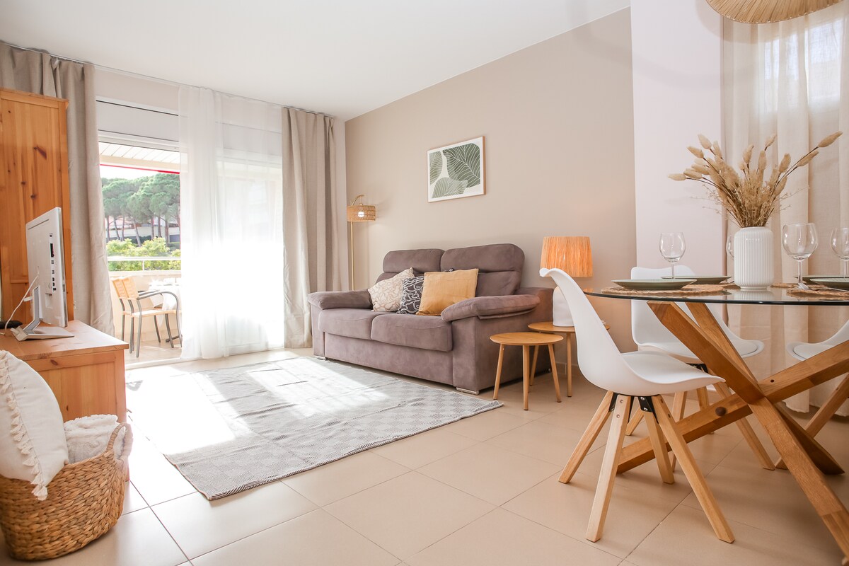 Bonito apartamento muy cerca del mar, en un ambiente tranquilo, familiar y muy adecuado para disfrutar de la playa en primavera, verano y otoño. Se encuentra lejos de la zona de ambiente nocturno. Zona comunitaria ajardinada con piscina, parque infantil y mesas de ping-pong. Plaza de parking incluida en el precio. En la playa de Fenals es posible practicar snorkel, parasailing, submarinismo, etc. Tenemos cuna y trona . Hay un punto de recarga para coches eléctricos en la calle muy cerca,