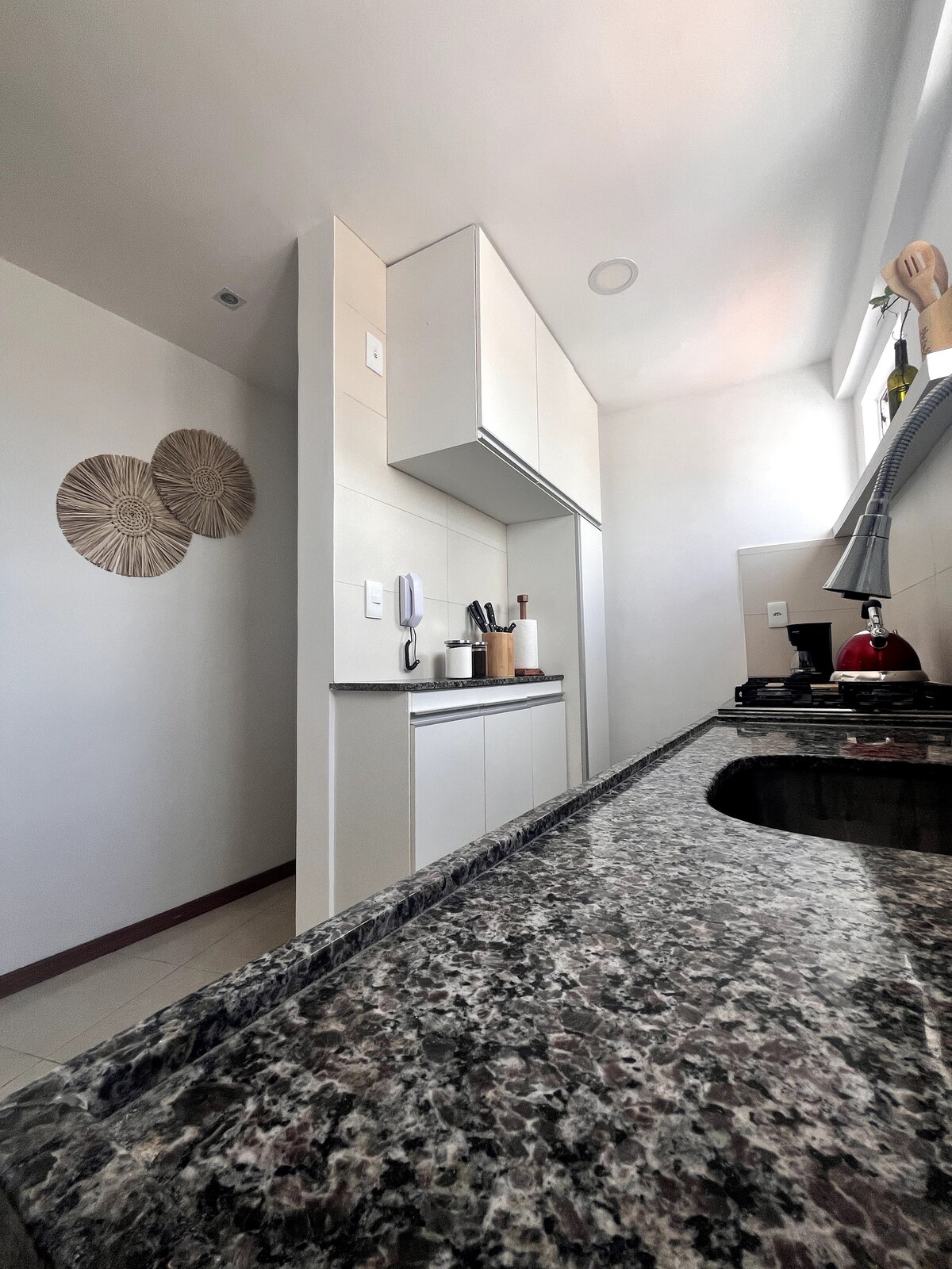 En este departamento de 2 dormitorios con grandes ventanales y una ubicación única, te espera una vista impresionante de Morro do Chapéu y del mar desde la playa de Ponta Negra. Aire acondicionado dividido en las dos habitaciones. Wifi de alta velocidad (300 Mbps), perfecto para quienes necesitan trabajar desde casa. Contamos con un televisor inteligente, piscina y un garaje cubierto y giratorio. En los alrededores también hay panaderías, gimnasios y excelentes restaurantes. Aceptamos una mascota (perro) con un peso máximo de 6 kg. 🐾