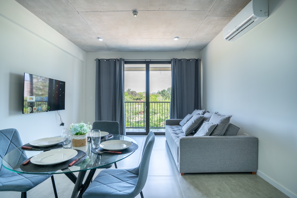 Amplio y moderno en el centro financiero de Asunción. Estarás a pasos del Shopping del Sol y Paseo La Galería, y a solo 10 minutos del aeropuerto. Ideal para parejas, viajerosde negocios y turistas. Cocina equipada, Wi-Fi rápido, A/C y TV. Acceso a piscina, gym, coworking y terraza con barra. Seguridad 24 hs. Todo pensado para descansar o trabajar cómodo, con conexión a restaurantes, shoppings y oficinas.