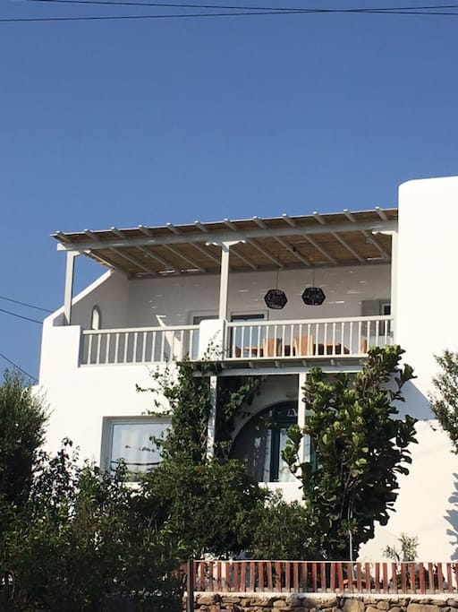 Bienvenido a nuestro acogedor apartamento ubicado a pocos minutos del corazón de la ciudad de Miconos. ¡Ideal para familias, parejas y amigos con espacio de estacionamiento y fácil acceso en las calles llenas de cafés, mercado, panadería y más! Características: - Tres camas tamaño queen y tres baños, dos de los cuales en suite. - Aire acondicionado - Internet wifi de hasta 200 mbps de velocidad. - Cocina totalmente equipada. - Amplia sala de estar que conduce a una terraza con asientos al aire libre con vistas al atardecer y al mar. - Lavadora y lavavajillas