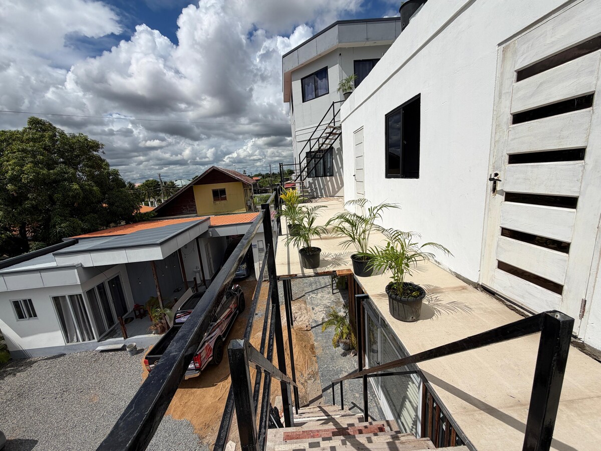 Olvídate de tus preocupaciones en este espacio espacioso y sereno. Mientras disfrutas de tu zen, todavía estás a 2 minutos de toda la diversión. El centro comercial internacional de Surinam está a 2 minutos en auto, donde tienes buenas tiendas, restaurantes y la vida nocturna. Los departamentos están totalmente climatizados con agua caliente/fría. ¡También ofrecemos wifi y netflix! ¡Siénte seguro con nuestro sistema de alarma y nuestra puerta de control remoto!