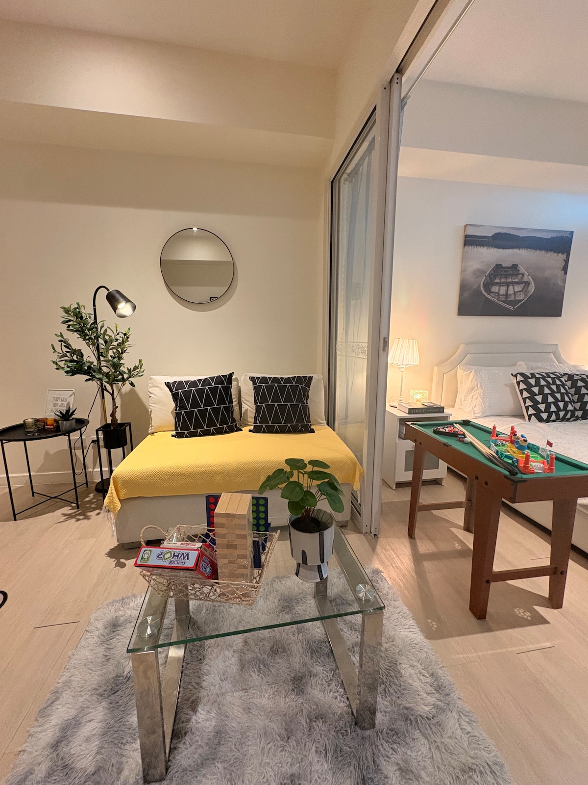 Porscha's Nest at Two Palm Tree Villas es una elegante unidad tipo estudio a solo 5 minutos a pie de Newport World Resorts, que ofrece restaurantes, entretenimiento y casinos. Convenientemente cerca de la Terminal 3 de Naia, garantiza un viaje sin problemas. Cerca se encuentran Starbucks, Anytime Fitness, una clínica dental y una lavandería. Disfruta de Metro Grocery, Popeyes, Gong Cha y más. Este acogedor refugio ofrece comodidad, comodidad y fácil acceso a todo lo que necesitas para una estadía inolvidable.