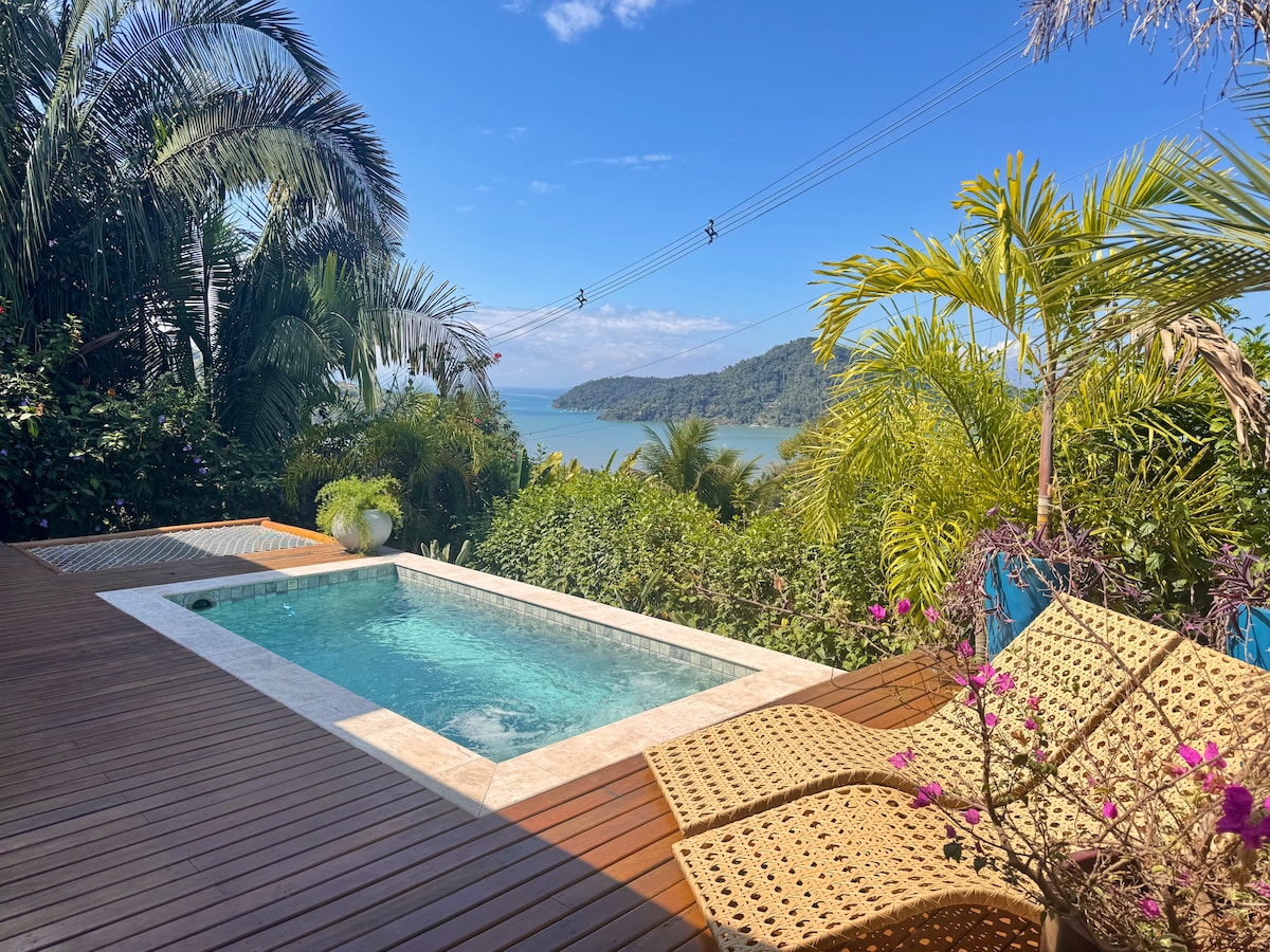 Casa nueva en un lugar tranquilo y paradisíaco con total privacidad, insertada en el bosque junto al Parque da Bocaina en Paraty: + Vista panorámica del Valle y el Bosque + 2 acogedoras habitaciones (suites) para un máximo de 4 huéspedes + Piscina infinita climatizada + Internet de alta velocidad 100 Mbps + Aire acondicionado frío y calor + Cascadas privadas + Cocina completa + Área de gourmet con barbacoa y horno de madera. + Acceso 100% pavimentado, a 10 km del centro de Paraty