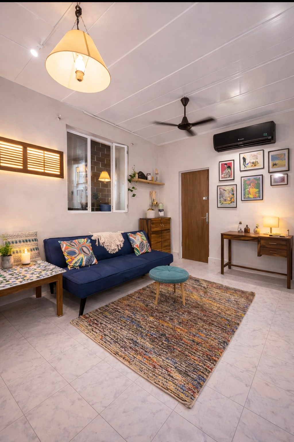 Ubicado en el corazón del icónico barrio Pali de Bandra, nuestro encantador apartamento 2BHK ofrece la combinación perfecta de comodidad, estilo y ubicación. Despiértate rodeado del bullicio de los cafés más de moda, panaderías artesanales y boutiques de diseño de Mumbai. Sal y sumérgete al instante en la vibrante energía de Bandra West, pero escondido en un carril tranquilo que susurra las historias de la antigua aldea de Pali. Nuestro alojamiento es un espacio acogedor y bien equipado donde la elegancia urbana se encuentra con el encanto vintage.